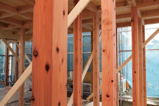 ”赤い柱”は、地震に強い工法に高耐久な構造材を組み合わせることで、 「10年後、20年後も安心して暮らせる、地震に強い家づくり」を、サポートする画期的なシステムです。