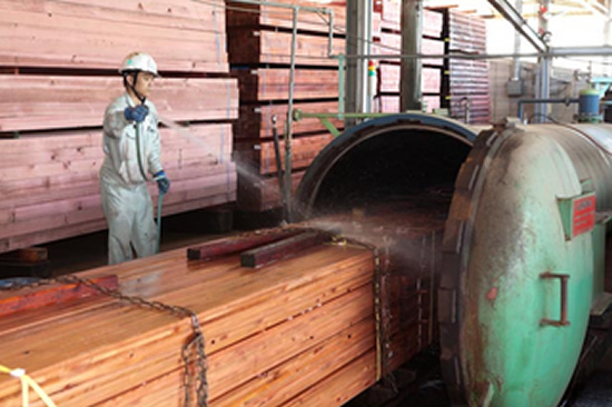 「赤い柱」では、住宅構造材の防腐・防蟻に対して、