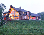 切妻屋根ドーマー、落ち着いた平屋のルーフライン。そして、グレートルームを取り囲むようにあるセミ・サーキュラー階段(オプション)は、2階のマスターベッドルームへと誘います。まさに"Lindal Style"と呼ぶに相応しいプランです。