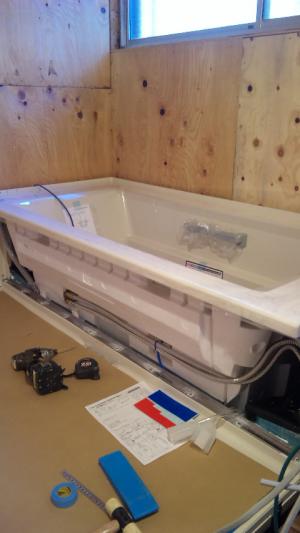 既存のお風呂はバランス釜があり、浴槽部分が小さい状態です。それとタイルの浴室と言う事で、冬場はとてもひんやりします。この2点を解消するためにユニットバスへ入替える事になりました。