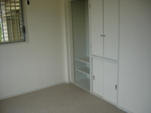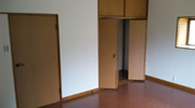 寝室のリフォームです。大きな変化はありませんが、カーペット敷きをフローリングへ。板張りの壁をビニールクロスへ。押入れの建具を折戸に変更。押入れの中段を撤去し、クローゼット風にリフォームしました。更にはサッシの入替えもしました。壁紙や建具を変えるだけで部屋のイメージは変化します。